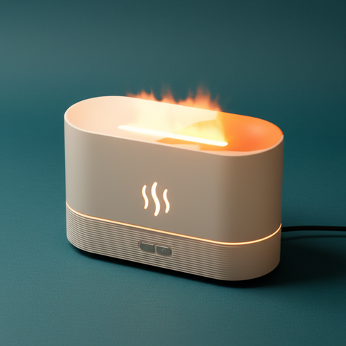 Disfruta de aromaterapia con efecto llama LED y niebla fría ultrasónica. Humidifica, perfuma y transforma tu espacio durante 9–12 horas continuas con un diseño moderno y seguro.